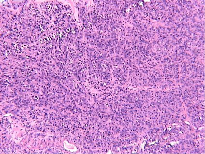 Pathology results showed a –2.2 × 1.8 × 0.8 cm submucosal nodule was in the intestinal wall. Microscopic findings confirmed the invasion of tumor cell growth, cell atypia, and mitoses (Figure 2). Immunohistochemical staining showed that the cancer cells expressed TTF1 (+), villin (–), CDX2 (–), CK7 (+), CK20 (–). These findings confirmed a diagnosis of small intestinal malignant tumor, and poorly differentiated metastatic carcinoma.